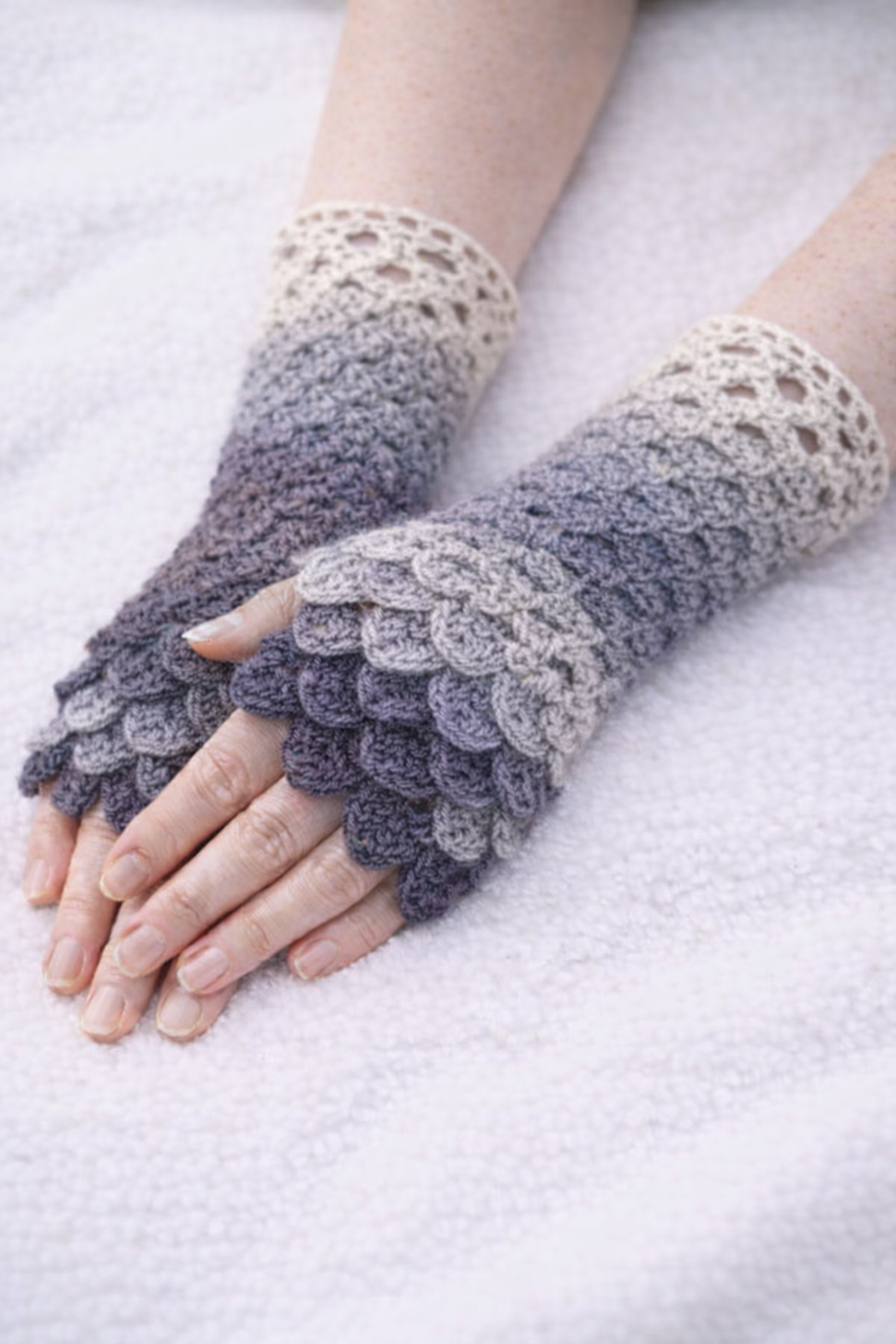 Crocheted in a quality wool/acrylic blend which is machine washable, so practical as well as beautiful (I wash mine on the 30° wool cycle to keep them in the best condition).
