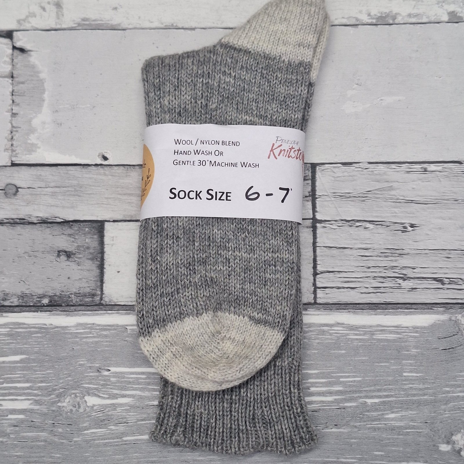 Made from good quality 75% Superwash wool/25% nylon blend, these socks are practical and hard wearing and will last and last. Once you’ve tried knitted socks you’ll never want to wear anything else. So comfortable, so warm, so long lasting. Featuring a fully ribbed cuff, the ribbing continues across the top of the foot for a great fit but comfy too.