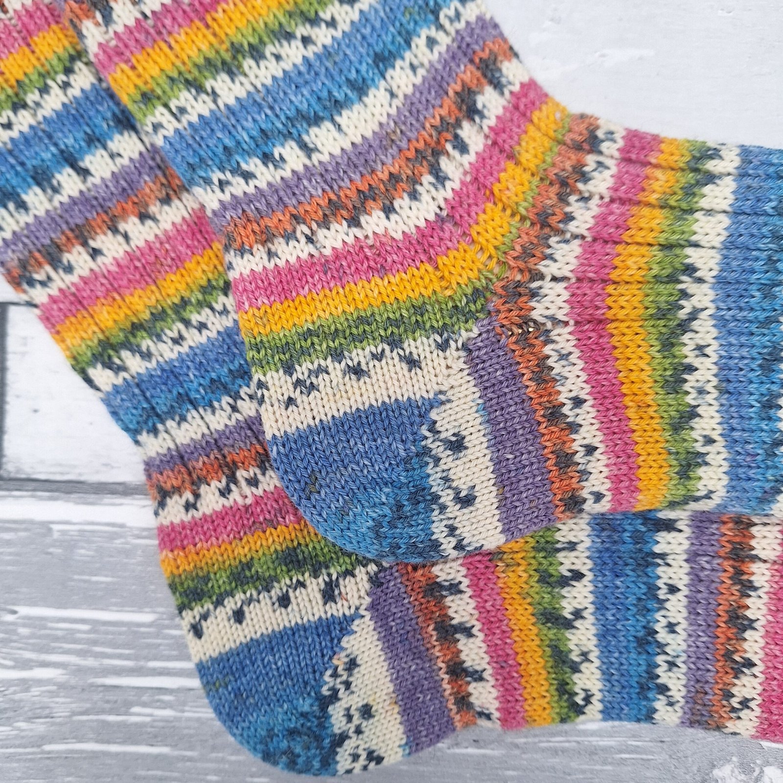 Continuing to softening with each wash, you can expect a very small amount of shrinkage initially, but it shouldn’t alter the fit as they will stretch back out with wear. That’s another bonus with knitted socks – they stretch and fit a wide range. And these are machine washable at 30 degrees (although I usually wash mine on the 30 degree wool setting).